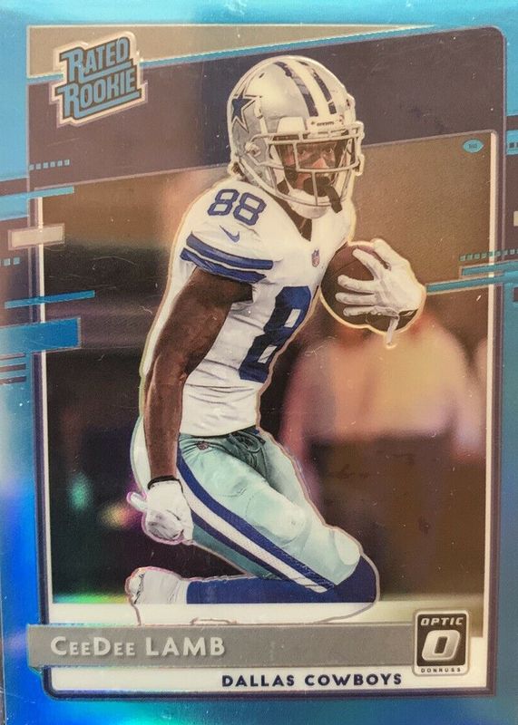 The CeeDee Lamb 2020 Optic #156 Aqua /299 Rookie card in Raw condition has moved down -$15.00 (-23.1%) in the last 30 days and was last sold for $50.00 .