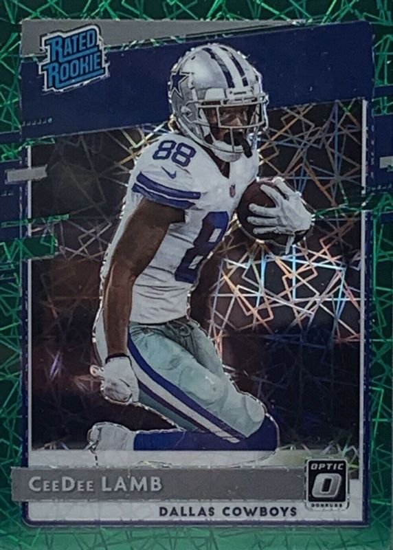 The CeeDee Lamb 2020 Optic #156 Green Velocity Rookie card in Raw condition has moved down -$11.00 (-44.0%) in the last 30 days and was last sold for $14.00 .