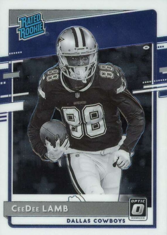 The CeeDee Lamb 2020 Optic #156 Variation Rookie card in Raw condition has moved down -$1.01 (-50.5%) in the last 30 days and was last sold for $0.99 .