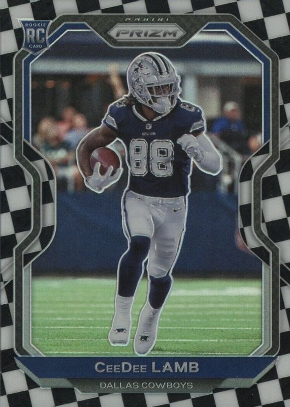 The CeeDee Lamb 2020 Prizm #334 Black & White Checker /(SSP) Rookie card in Raw condition has not changed in price in the last 30 days and was last sold for $202.50 .