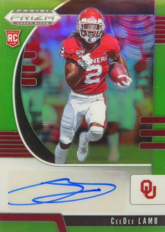 2020 Prizm Draft CeeDee Lamb Neon Green Prizm Rookie Auto RC #7/25 #104 Sooners