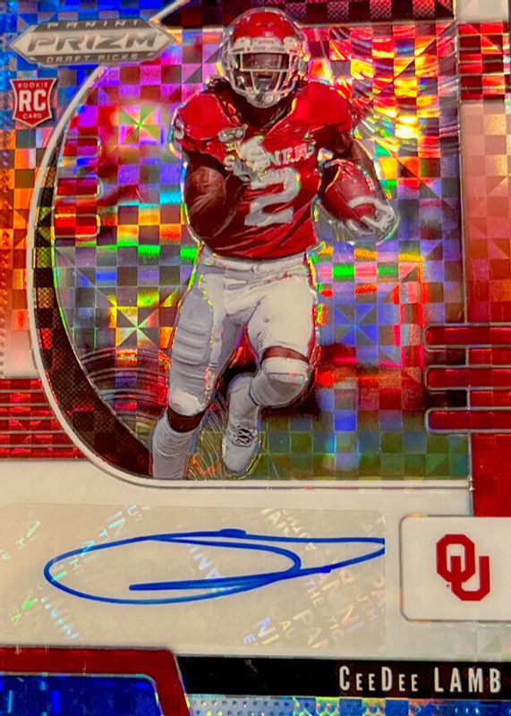 2020 Ceedee Lamb Prizm Draft Red White Blue Checkerboard Auto RC ROOKIE #11 /75