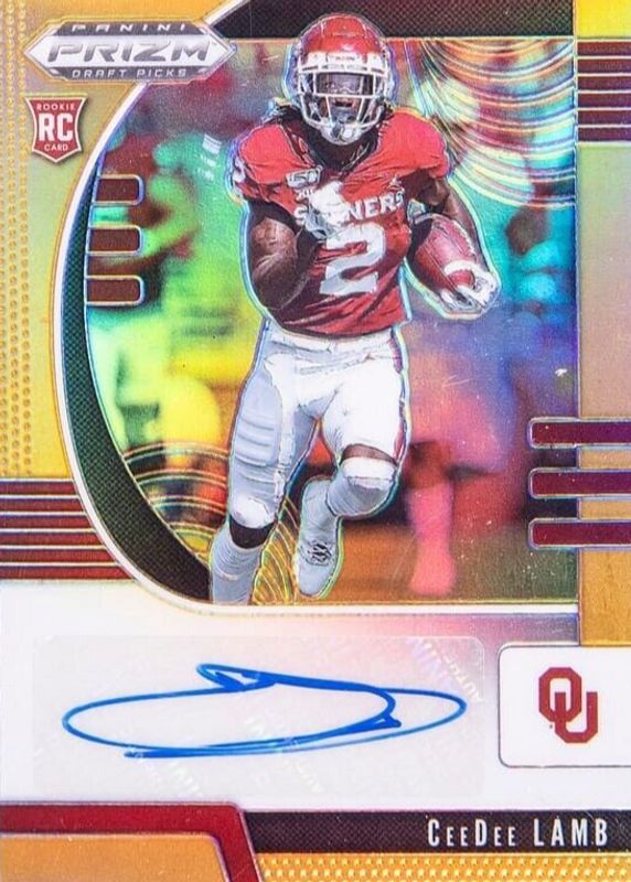 This card is 1 of 24 CeeDee Lamb's card variations in the 2020 Prizm Draft Picks set being tracked by Sports Card Investor, including Silver, Autographs - Blue, Autographs - Green, Autographs - Hyper (/50), and Autographs - Neon Green (/25).