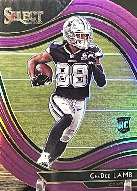 The CeeDee Lamb 2020 Select #357 Field Level Purple Die-Cut Rookie card in Raw condition has moved down -$2.00 (-33.3%) in the last 30 days and was last sold for $4.00 .