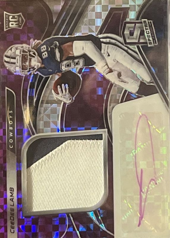 2020 PANINI SPECTRA PURPLE PRIZM ROOKIE PATCH AUTO CEEDEE LAMB RC /35