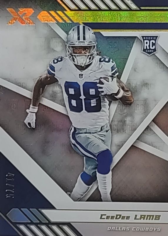 This card is 1 of 10 CeeDee Lamb's card variations in the 2020 XR set being tracked by Sports Card Investor, including Base, Red /249, Blue /199, Orange /99, and Teal /49.