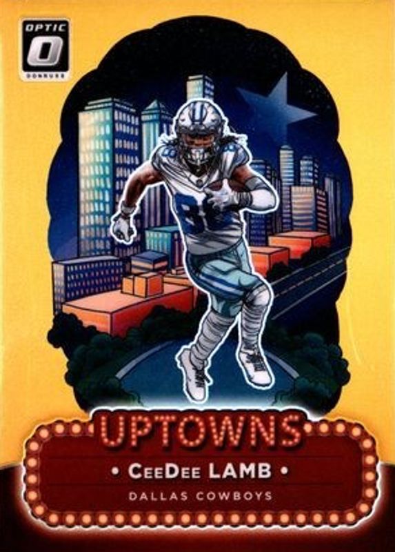 This card is 1 of 5 CeeDee Lamb's card variations in the 2024 Optic set being tracked by Sports Card Investor, including Uptowns /(SSP), Uptowns - Black Pandora /25, Uptowns - Gold Vinyl /1, and Uptowns - White Sparkle /1.