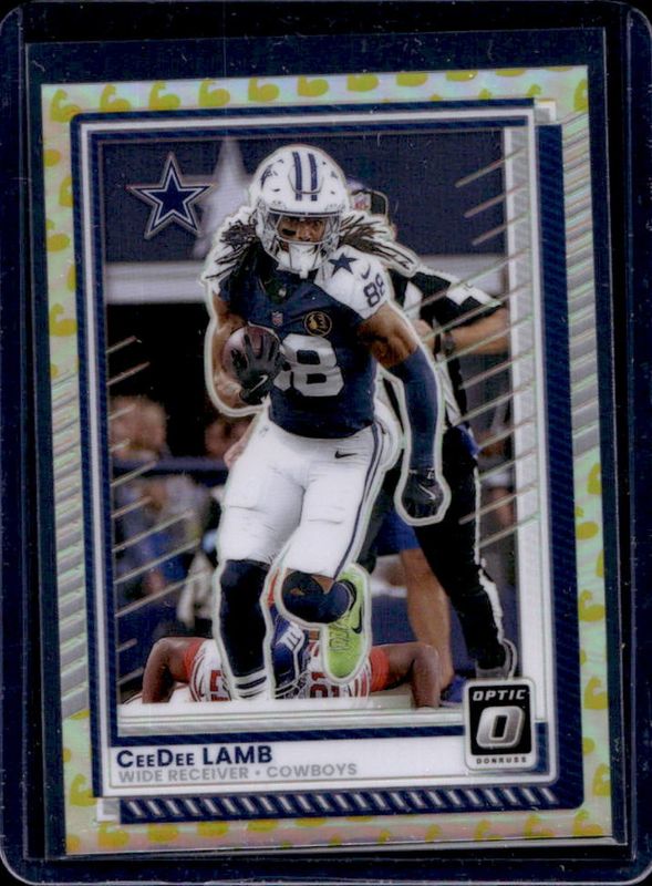 The CeeDee Lamb 2025 Optic #24 Flex /199 card is 1 of 48 CeeDee Lamb's card variations in the 2025 Optic set being tracked by Sports Card Investor, including Base, Holo, Neon Blue /399, Aqua /349, and Wave /300.