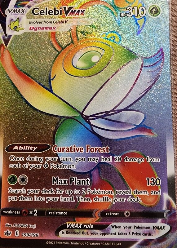 The Celebi VMAX 2021 Sword & Shield: Chilling Reign #199/198 Holo (Secret) card in Raw TCG (Near Mint) condition has moved up $5.00 (+33.3%) in the last 30 days and was last sold for $20.00 .