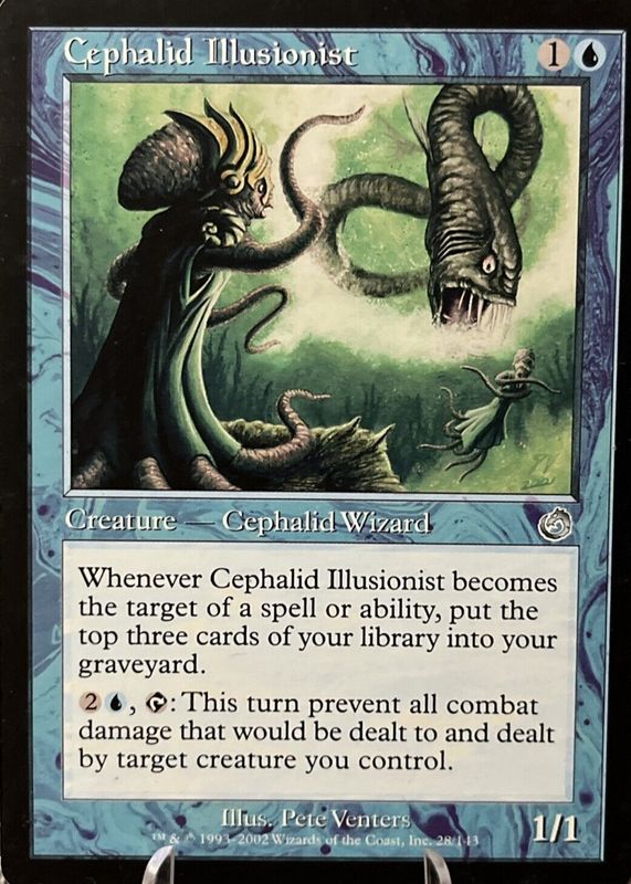 The Cephalid Illusionist 2002 Torment #28 Base card in Raw TCG (Lightly Played) condition has not changed in price in the last 30 days and was last sold for $2.64 .
