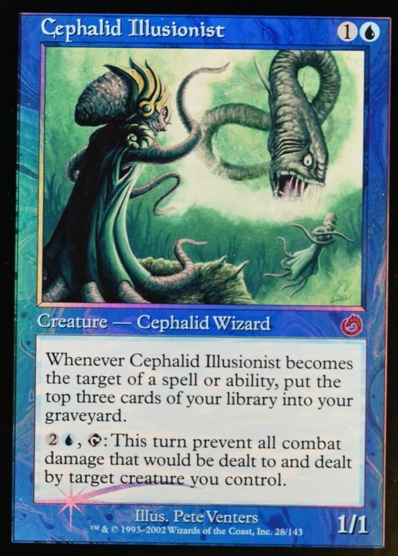 The Cephalid Illusionist 2002 Torment #28 Foil card in Raw TCG (Lightly Played) condition has not changed in price in the last 30 days and was last sold for $50.00 .