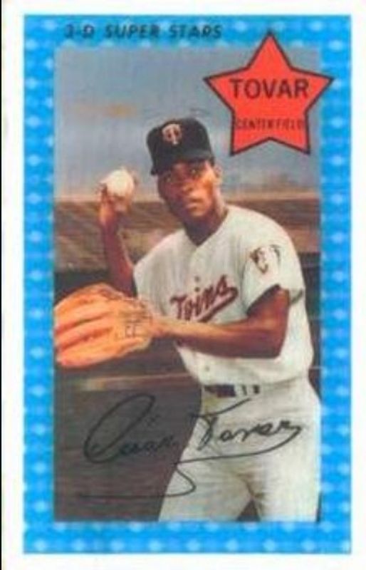 The Cesar Tovar 1971 Kellogg's 3-D Super Stars #18 Base card is 1 of 2 Cesar Tovar's card variations in the 1971 Kellogg's 3-D Super Stars set being tracked by Sports Card Investor, including Base.