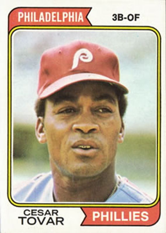 The Cesar Tovar 1974 Topps #538 Base card is 1 of 2 Cesar Tovar's card variations in the 1974 Topps set being tracked by Sports Card Investor, including Traded.