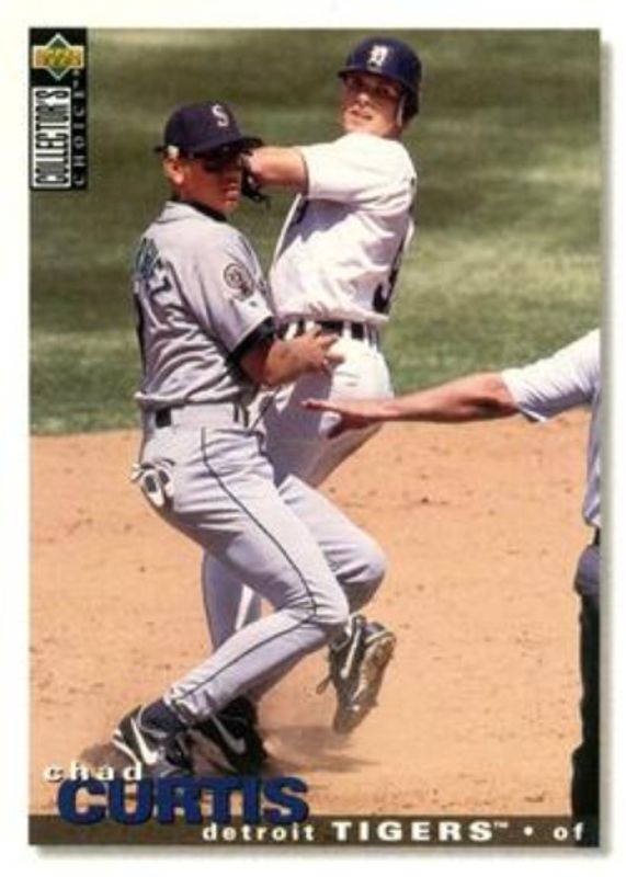 The Chad Curtis 1995 Upper Deck Collector's Choice #580 Base card is 1 of 4 Chad Curtis' card variations in the 1995 Upper Deck Collector's Choice set being tracked by Sports Card Investor, including Base, Gold Signatures, and Silver Signatures.