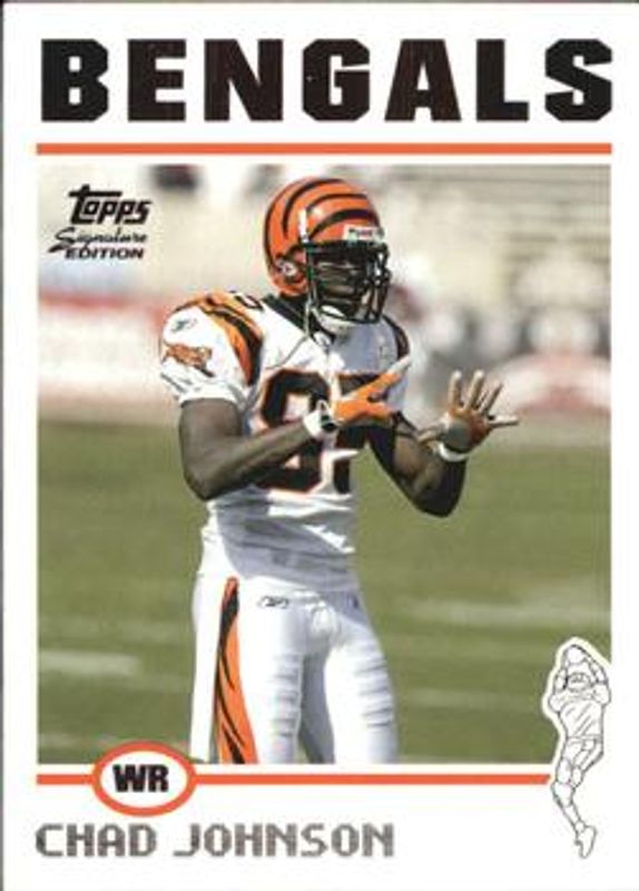 The Chad Johnson 2004 Topps Signature #2 Base /499 card is 1 of 3 Chad Johnson's card variations in the 2004 Topps Signature set being tracked by Sports Card Investor, including Blue /50, and Gold /1.