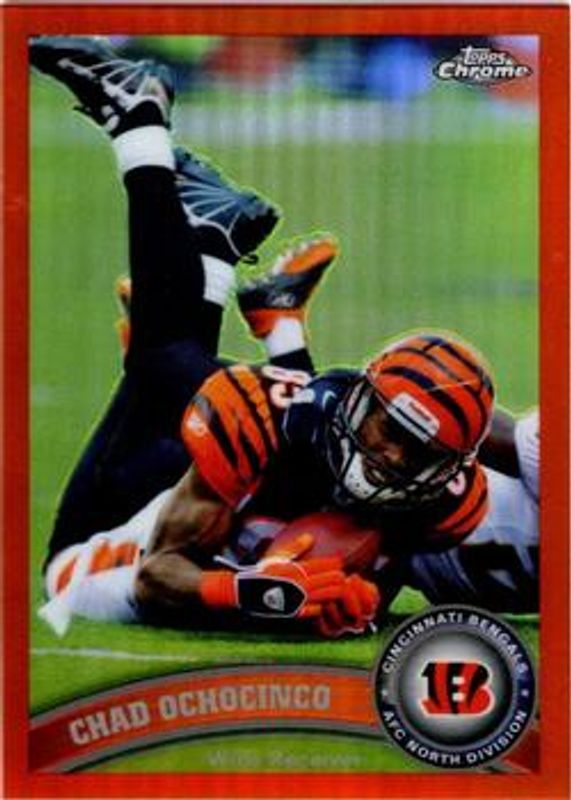 The Chad Johnson 2011 Topps Chrome #57 Orange Refractor card is 1 of 16 Chad Johnson's card variations in the 2011 Topps Chrome set being tracked by Sports Card Investor, including Base, Refractor, X-Fractor, Purple Refractor /499, and Black Refractor /299.