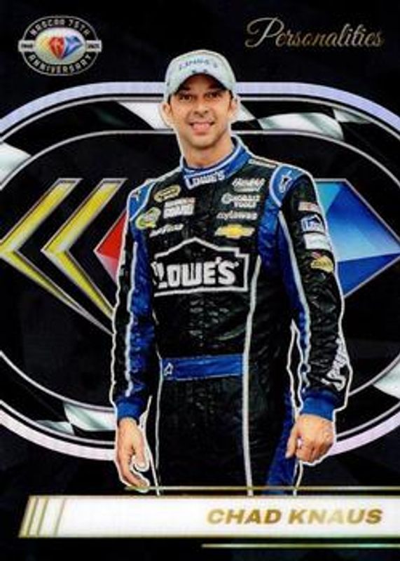 The Chad Knaus 2023 Prizm NASCAR #74 NASCAR 75th Anniversary card is 1 of 3 Chad Knaus' card variations in the 2023 Prizm NASCAR set being tracked by Sports Card Investor, including NASCAR 75th Anniversary - Gold /10, and NASCAR 75th Anniversary - Gold Vinyl /1.