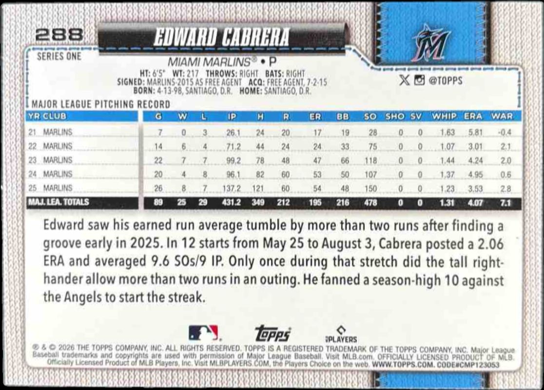 Other popular players in the 2026 Topps set include Shohei Ohtani, Aaron Judge, Jac Caglianone, Julio Rodriguez, and Roman Anthony.