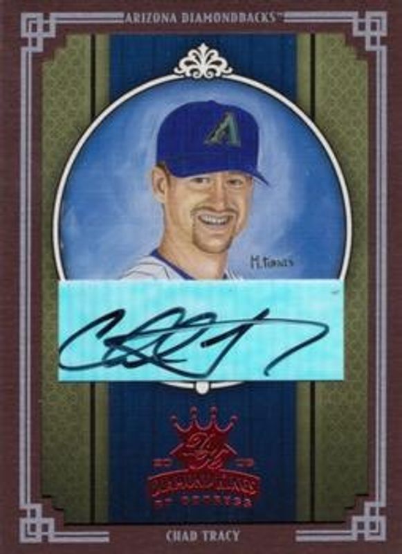 The Chad Tracy 2005 Diamond Kings #15 Signatures - Framed Red /1 card is 1 of 34 Chad Tracy's card variations in the 2005 Diamond Kings set being tracked by Sports Card Investor, including Base, Framed Red, Non Canvas, Framed Blue /100, and Bronze /50.