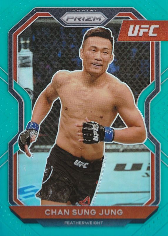 Chan Sung Jung's MMA cards are available in at least 9 sets. Chan Sung Jung's biggest 7-day price movers are 2021 Prizm UFC #78 Teal /49, 2021 Prizm UFC #78 Orange /99, and 2021 Prizm UFC #78 Silver.