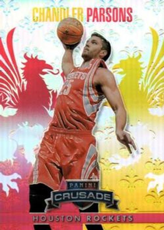 The Chandler Parsons 2013 Crusade #60 Crusade Red /349 card is 1 of 13 Chandler Parsons' card variations in the 2013 Crusade set being tracked by Sports Card Investor, including Base, Silver /25, Gold /10, 2014 National Blue /5, and Black /1.