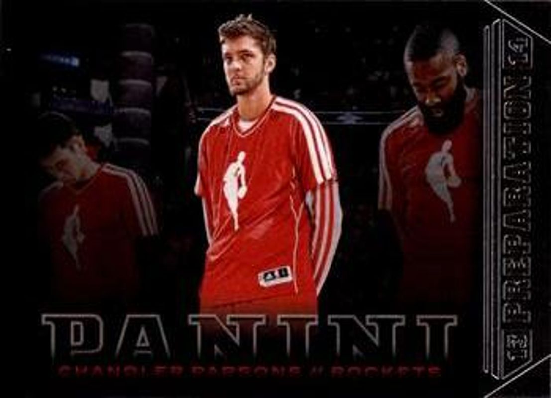 The Chandler Parsons 2013 Panini #2 Preparation card is 1 of 8 Chandler Parsons' card variations in the 2013 Panini set being tracked by Sports Card Investor, including Base, Gold Knights, Red Knights, Black Knights /1, and All Panini.