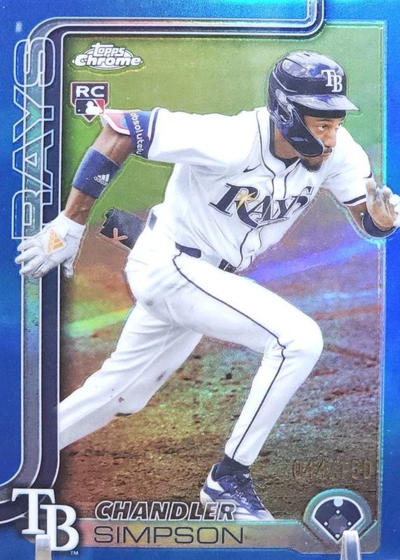 The Chandler Simpson 2025 Topps Chrome Update #USC179 Blue Refractor /150 Rookie card in Raw condition has moved up $3.00 (+8.1%) in the last 30 days and was last sold for $40.00 .