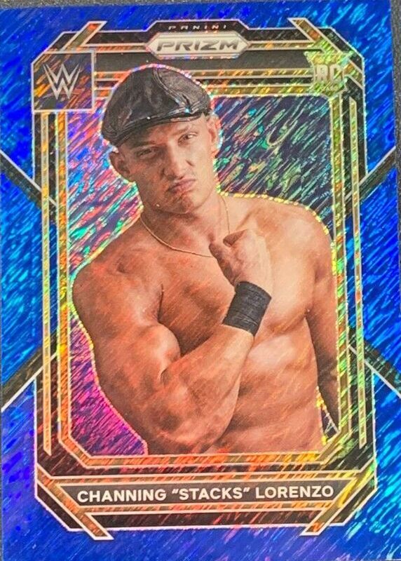The Channing "Stacks" Lorenzo 2023 Prizm WWE #113 Blue Shimmer /11 Rookie card in Raw condition has not changed in price in the last 30 days and was last sold for $10.50 .