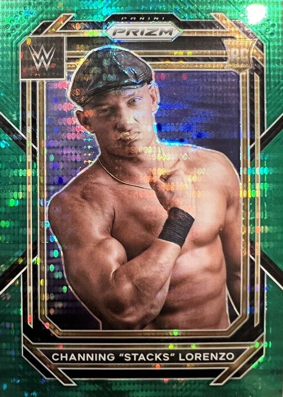 The Channing "Stacks" Lorenzo 2023 Prizm WWE #113 Green Pulsar /25 Rookie card in Raw condition has not changed in price in the last 30 days and was last sold for $18.50 .