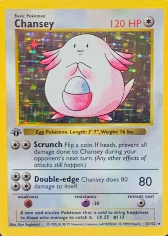 Auctions Ending Soon for Chansey 1999 Pokemon Game #3 1st Edition Holo (Thick Stamp) RAW TCG (NEAR MINT)