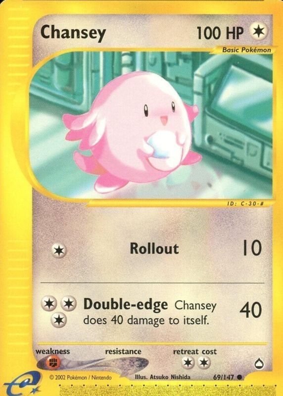 The Chansey 2003 Aquapolis #069/147 Base card in Raw TCG (Near Mint) condition has moved down -$0.99 (-33.1%) in the last 30 days and was last sold for $2.00 .