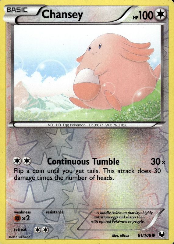 Chansey 2012 Black & White: Dark Explorers #081/108 Reverse Holo RAW TCG (LIGHTLY PLAYED) Price Guide