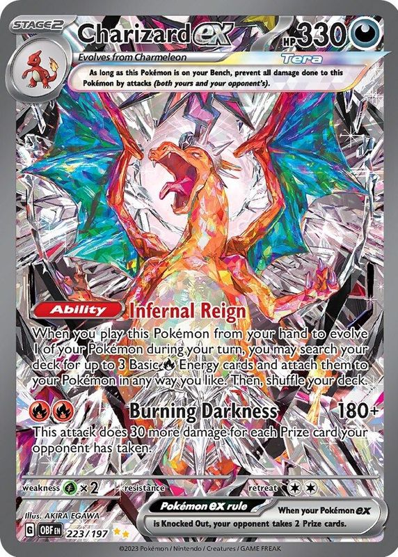 The Charizard ex 2023 Scarlet & Violet: Obsidian Flames #223/197 Special Illustration Rare card is currently the 10th most trending card in Pokemon.