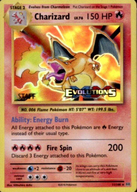 Charizard 2016 XY: Evolutions #011/108 Holo (Prerelease - STAFF) RAW TCG (MODERATELY PLAYED) Price Guide