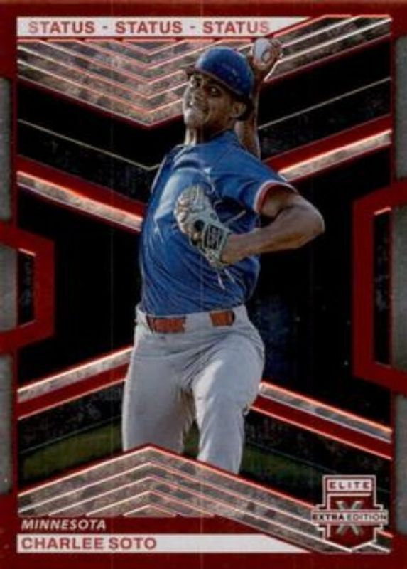 The Charlee Soto 2023 Elite Extra Edition #75 Status Red /199 card is 1 of 39 Charlee Soto's card variations in the 2023 Elite Extra Edition set being tracked by Sports Card Investor, including Base, Pink, Signatures, Status Green /499, and Signatures die-cut /399.