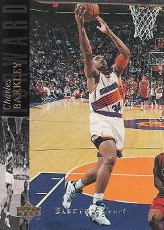 The Charles Barkley 1993 Upper Deck Special Edition #91 Electric Court card is 1 of 7 Charles Barkley's card variations in the 1993 Upper Deck Special Edition set being tracked by Sports Card Investor, including Base, Electric Court Gold, Behind the Glass, Die-Cut All-Stars - Western Conference, and USA Basketball Exchange.