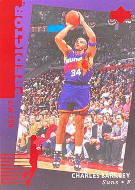 The Charles Barkley 1994 Upper Deck #H27 Predictors: Award Winners card is 1 of 14 Charles Barkley's card variations in the 1994 Upper Deck set being tracked by Sports Card Investor, including #121 Base, #17 Base, #S2 Kemp Slam Dunk Stars, #H17 Predictors: Award Winners, and #H1 Predictors: Award Winners.