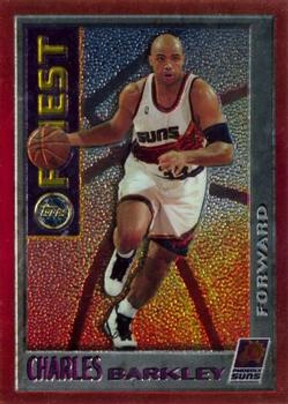 The Charles Barkley 1995 Topps Finest #M6 Mystery card is 1 of 5 Charles Barkley's card variations in the 1995 Topps Finest set being tracked by Sports Card Investor, including Base, Refractor, Mystery - Borderless Gold Refractor, and Mystery - Borderless Silver.