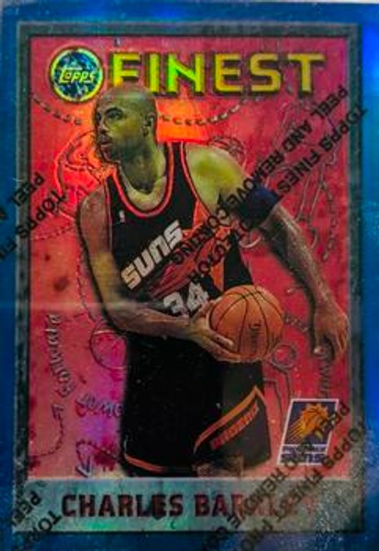 The Charles Barkley 1995 Topps Finest #34 Refractor card is 1 of 5 Charles Barkley's card variations in the 1995 Topps Finest set being tracked by Sports Card Investor, including Base, Mystery, Mystery - Borderless Gold Refractor, and Mystery - Borderless Silver.