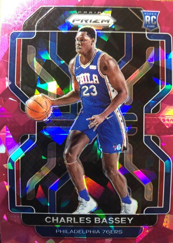 2021-22 Prizm #304 Charles Bassey Pink Cracked Ice Rookie RC Philadelphia 76ers
