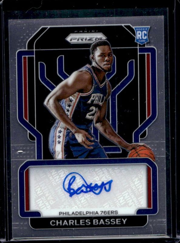 The Charles Bassey 2021 Prizm #RS-CBA Rookie Signatures card is 1 of 81 Charles Bassey's card variations in the 2021 Prizm set being tracked by Sports Card Investor, including Base, Blue NBA 75th Anniversary, Blue Wave, Choice Blue Yellow Green, and Factory Set Blue Hyper.