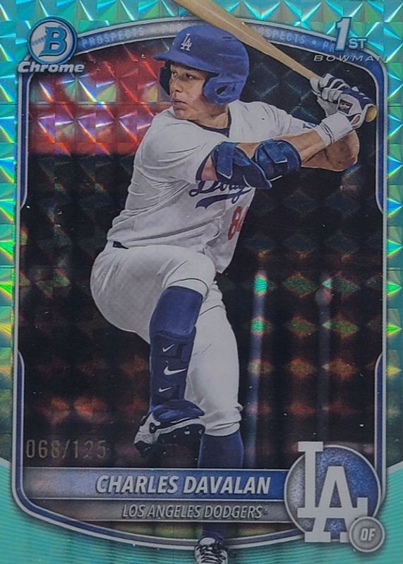 The Charles Davalan 2025 Bowman Draft #BDC-96 Chrome - Aqua Geometric Refractor /125 (1st) card in Raw condition has not changed in price in the last 30 days and was last sold for $10.05 .