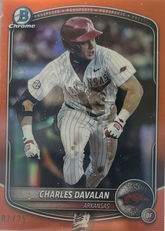 2025 Bowman Draft Chrome CHARLES DAVALAN COLLEGE VARIATION Dodgers Orange/25