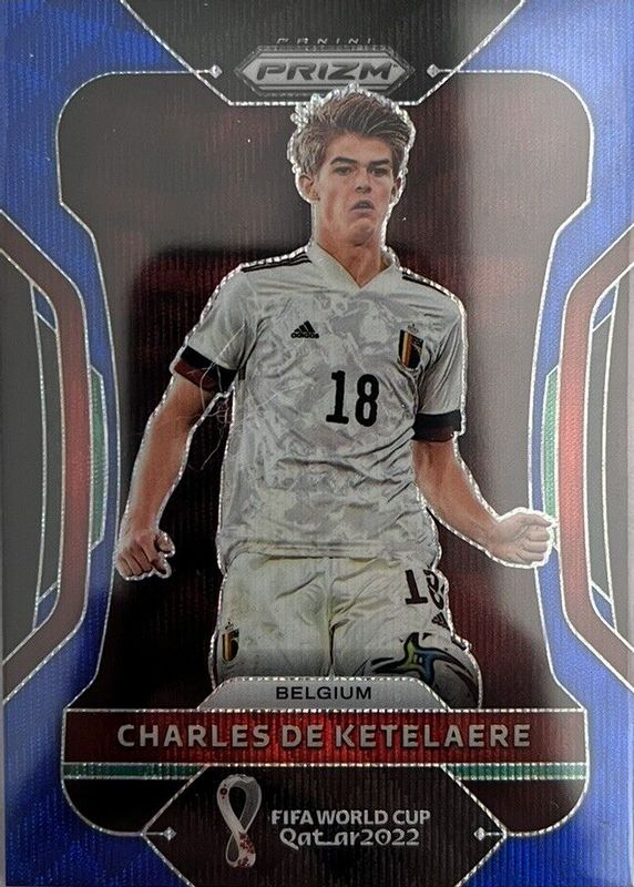 2022 Panini Prizm FIFA World Cup Qatar BLUE WAVE #15 Charles De Ketelaere /199