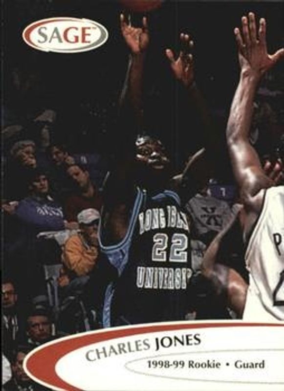 The Charles Jones 1998 Sage #22 Base card is 1 of 8 Charles Jones' card variations in the 1998 Sage set being tracked by Sports Card Investor, including Autographs Player Proof, Autographs /535, Autographs Bronze /350, Autographs Silver /215, and Autographs Gold /110.
