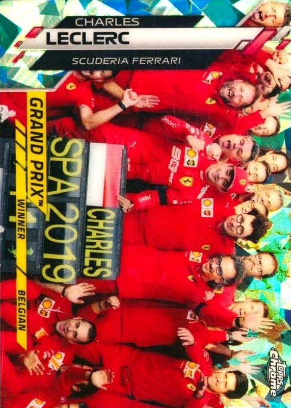 The Charles Leclerc 2020 Topps Chrome Formula 1 Sapphire Edition #145 Grand Prix Winners - Aqua /99 (Belgium) Rookie card in Raw condition has not changed in price in the last 30 days and was last sold for $64.00 .