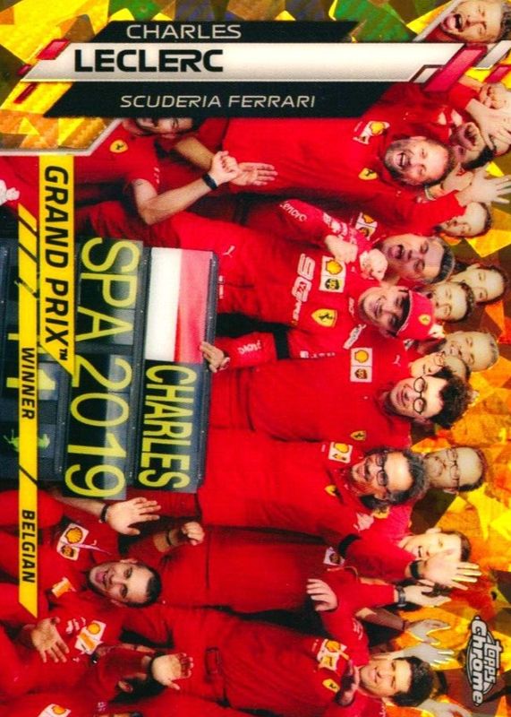 The Charles Leclerc 2020 Topps Chrome Formula 1 Sapphire Edition #145 Grand Prix Winners - Gold /50 (Belgium) Rookie card in Raw condition has not changed in price in the last 30 days and was last sold for $62.00 .