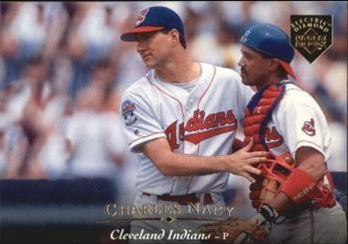 The Charles Nagy 1995 Upper Deck #91 Electric Diamond Gold card is 1 of 3 Charles Nagy's card variations in the 1995 Upper Deck set being tracked by Sports Card Investor, including Base, and Electric Diamond.