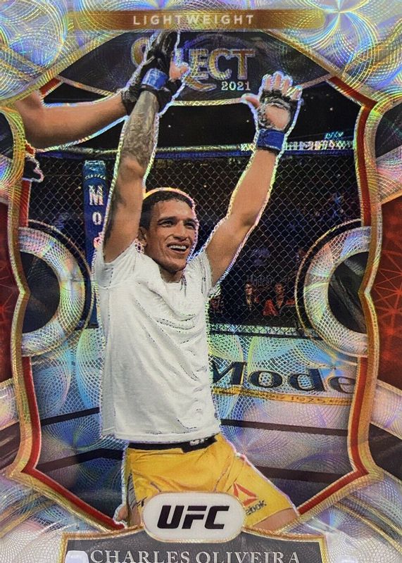 This card is 1 of 48 Charles Oliveira's card variations in the 2021 Select UFC set being tracked by Sports Card Investor, including Concourse Disco, Concourse Silver, Concourse Tri-Color, Octagonside Disco, and Octagonside Scope.