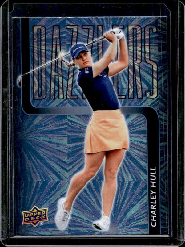 The Charley Hull 2026 Upper Deck #DZ-12 Dazzlers - Blue card is 1 of 32 Charley Hull's card variations in the 2026 Upper Deck set being tracked by Sports Card Investor, including Base, Green, Deluxe /250, Exclusives /100, and High Gloss /10.